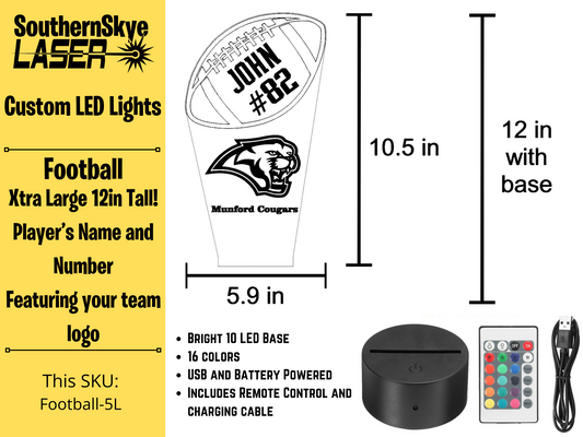 Football LED Light, Night Light, Desk Light Personalized Gift, Trophy, Award - XL 12 in tall