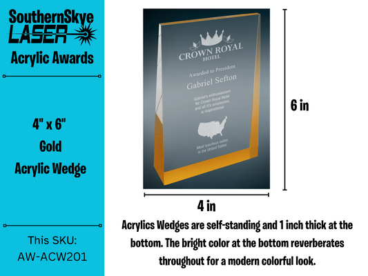 4" x 6" Gold Acrylic Wedge Trophy, Award