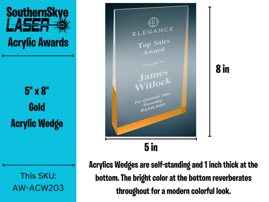 5" x 8" Gold Acrylic Wedge Trophy, Award
