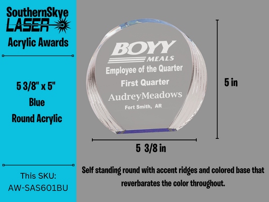 5 3/8" x 5" Blue Round Acrylic Award, Trophy