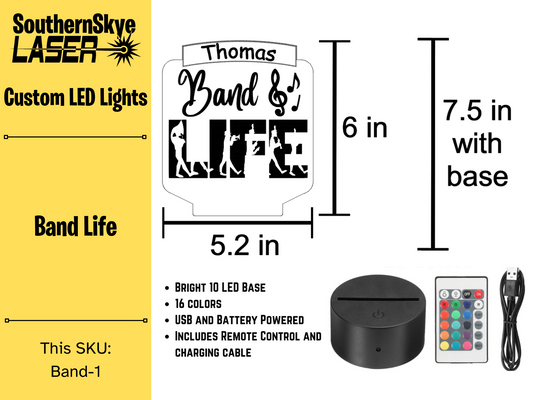 Band Life LED Light, Night Light, Desk Light Personalized Gift, Trophy, Award