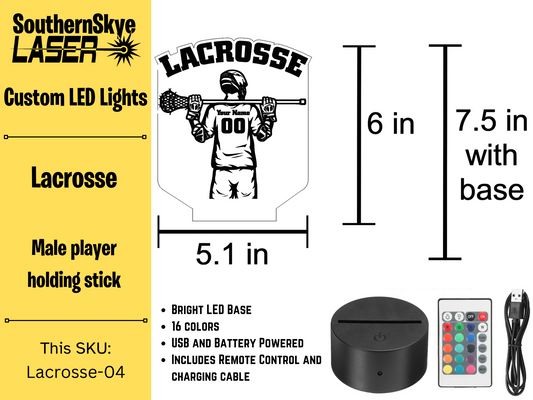 Lacrosse LED Light Featuring Player with name and number, Night Light, Desk Light Personalized Gift, Trophy, Award