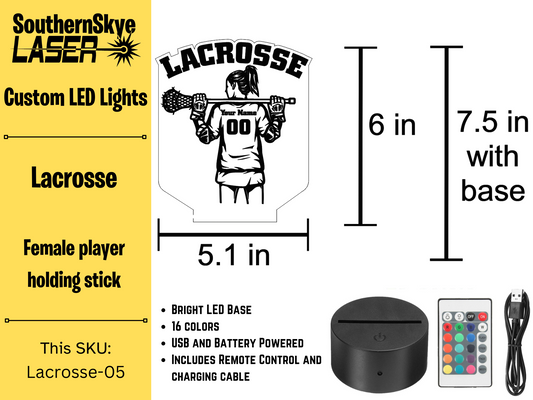 Lacrosse LED Light Featuring Female Player with name and number, Night Light, Desk Light Personalized Gift, Trophy, Award