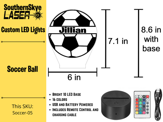 Soccer Ball LED Light, Night Light, Desk Light Personalized Gift, Trophy, Award