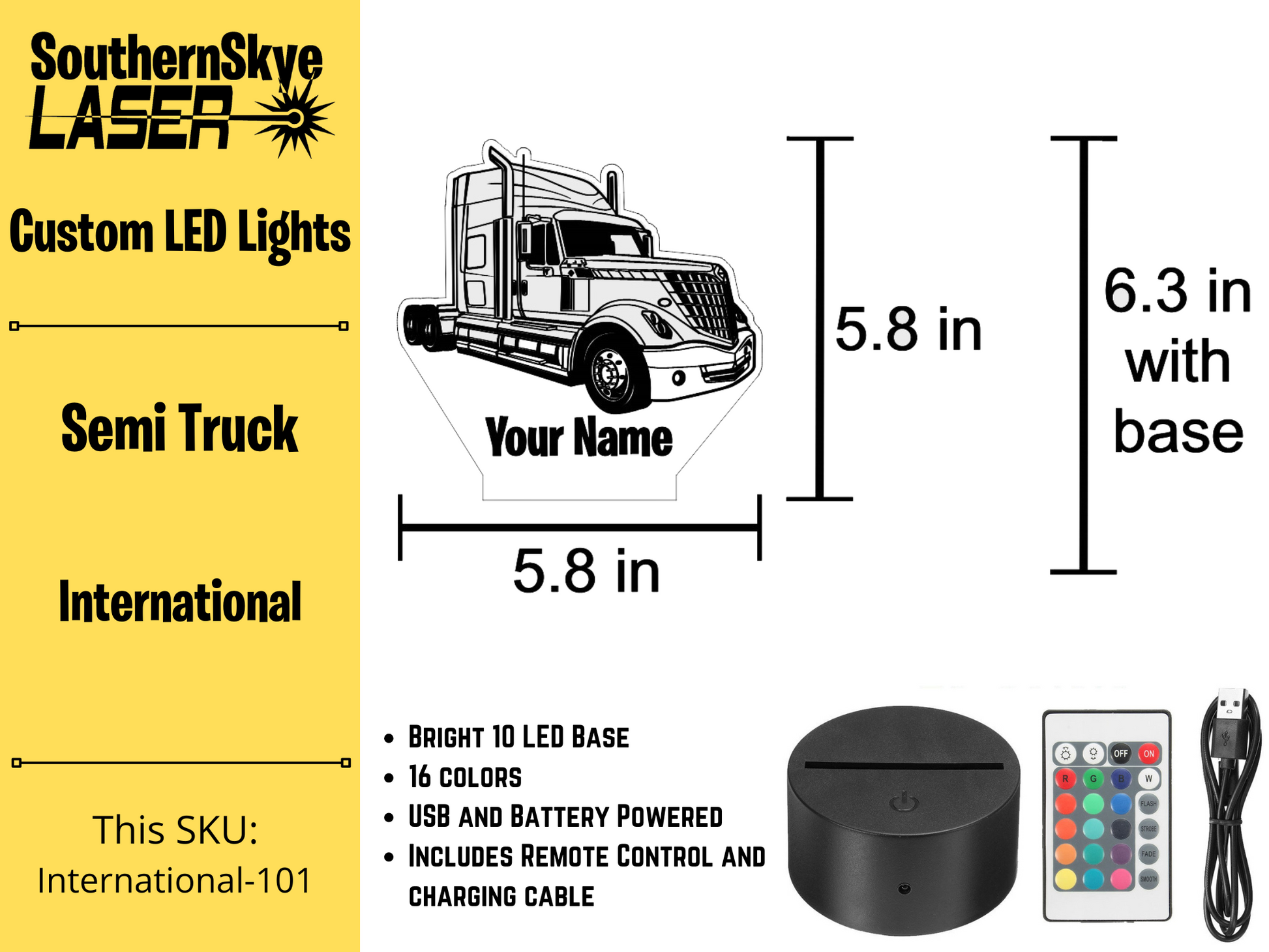 Semi Truck International LED Light, Night Light, Desk Light, Personalized Gift, Truck Driver Gift.